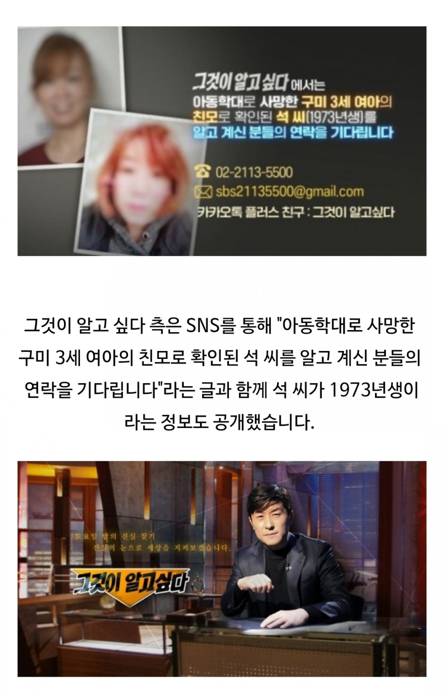 이 사건은 당초 아동학대 사건으로 알려졌다가 유전자(DNA) 검사에서 친모로 알려진 김씨가 숨진 구미 3세 여아 언니이고, 외할머니로 알려진 석씨가 친모로 밝혀지면서 아이 바꿔치기 여부 등으로 사회적으로 큰 충격을 주었는데요.