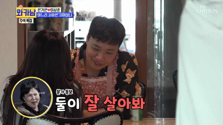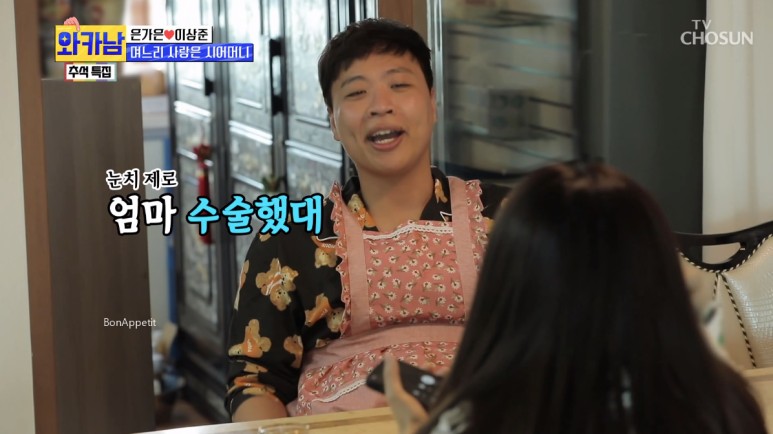 이상준은 이때 "아직 (성형) 수술한 걸 모르시니까"라며 "수술했대"라고 짓궂게 장난을 쳤는데요. 그러자 이상준의 어머니는 "성형은 필수다. 저도 눈 했다"고 급고백을 하며 며느리를 두둔하여 폭소를 자아냈습니다.