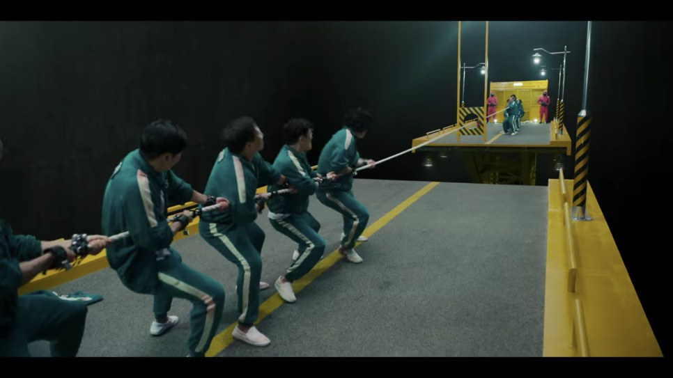 거대한 인형이 고개를 180도로 돌려가며 무궁화 꽃이 피었습니다 게임을 진행하는데 이 인형이 뒤를 돌아봤을 때 움직이는 사람들은 바로 총살당하게 됩니다. 첫 라운드에서 탈락자는 255명, 생존자는 201명으로 추려진다. 심히 공포스러운 첫 게임이라 대부분의 오징어 게임 참가자들이 게임 자체에 반기를 들었고 결국 주최측은 다수결이 원하지 않으면 지금 당장 게임을 중단하겠다 이야기합니다.