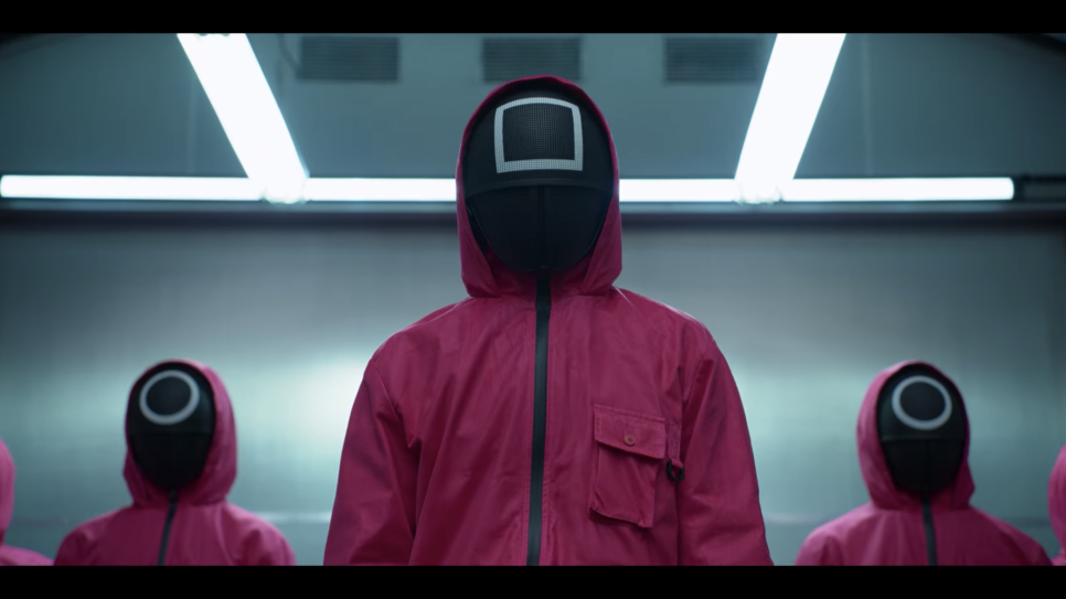 오징어 게임 스테이지 안을 관리하는 기호 모양은 동그라미, 세모, 네모 순의 레벨이 있으며 순서대로 일꾼, 병정, 관리자의 직급을 가지고 있습니다. 상사가 말을 걸기 전까진 아랫 레벨들은 절대 말을 해서는 안되며 가면을 벗고 참가자들이나 주최측 인간들에게 맨얼굴을 보이는 순간 즉결처분(총살)을 받습니다. 그리고 그들 위에, 검은색 가면과 후드 달린 롱 코트를 입은 '프론트맨'이 있습니다. 거의 모든 게임을 이 프론트맨이 컨트롤 합니다.