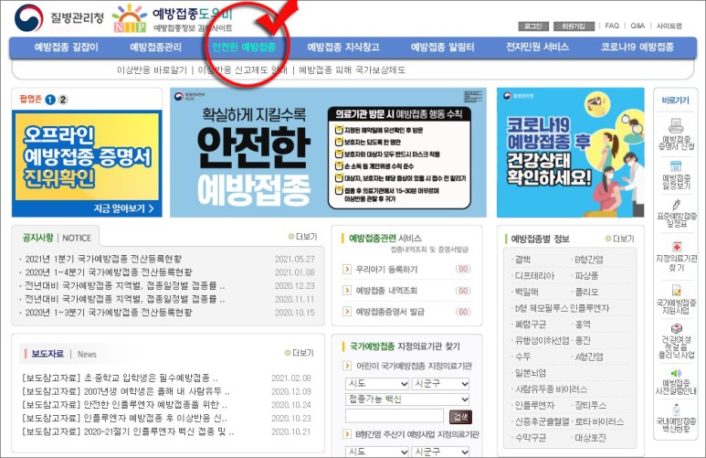 온라인 홈페이지 '예방 접종 도우미' 사이트 이상반응을 직접 신고할 수 있습니다.