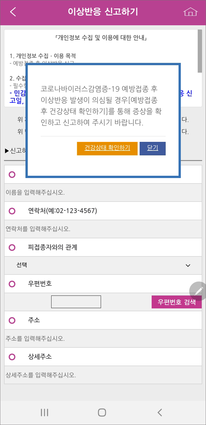 백신접종 후 이상반응 신고하기